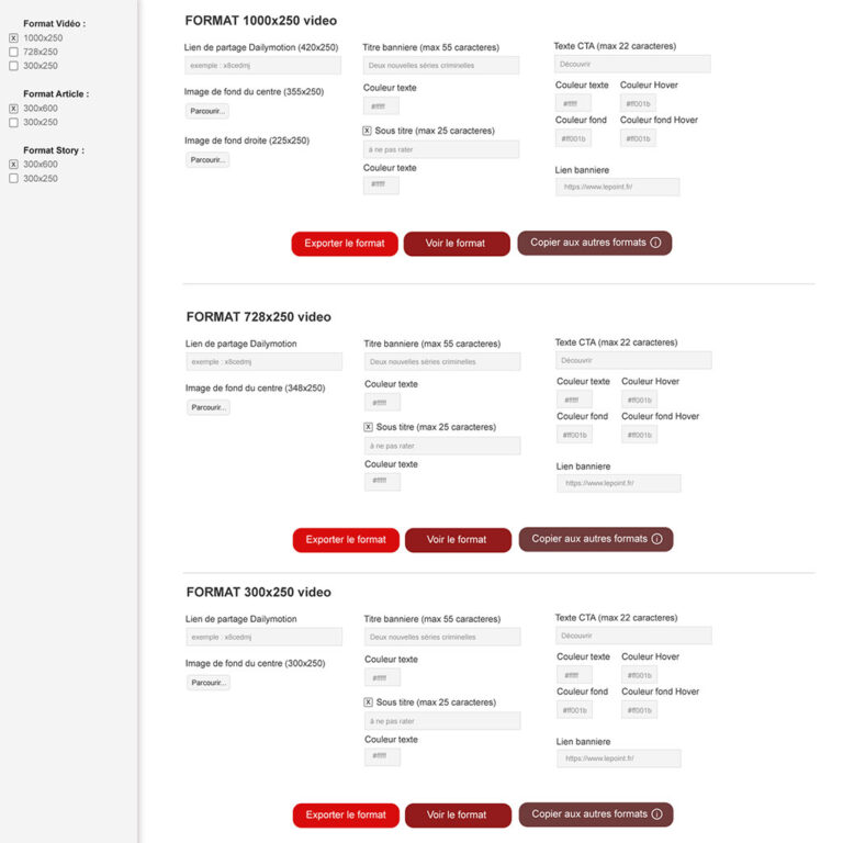 Notre système d’automatisation nous permet de gagner en productivité et de faciliter la collaboration avec nos clients pour une réalisation efficace et rapide de leurs projets de réalisations de bannières vidéo. Chez myFlow, nous sommes convaincus que la qualité et la rapidité ne sont pas incompatibles.