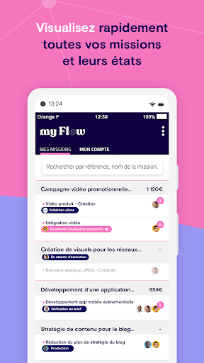 - Configuration de workflow sur mesure : Personnalisez les étapes, les intervenants et les rôles pour un cadre de mission clair. La définition de processus en amont vous assure que tous les intervenants respectent votre cahier des charges et que myFlow délivre la bonne information au bon moment.