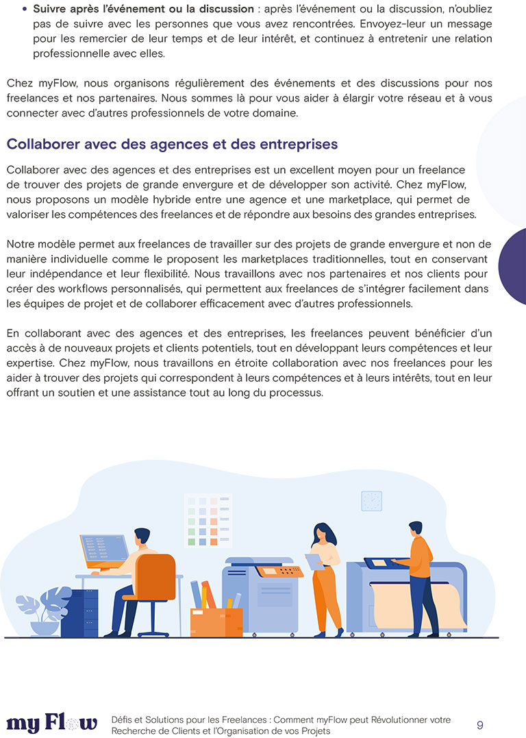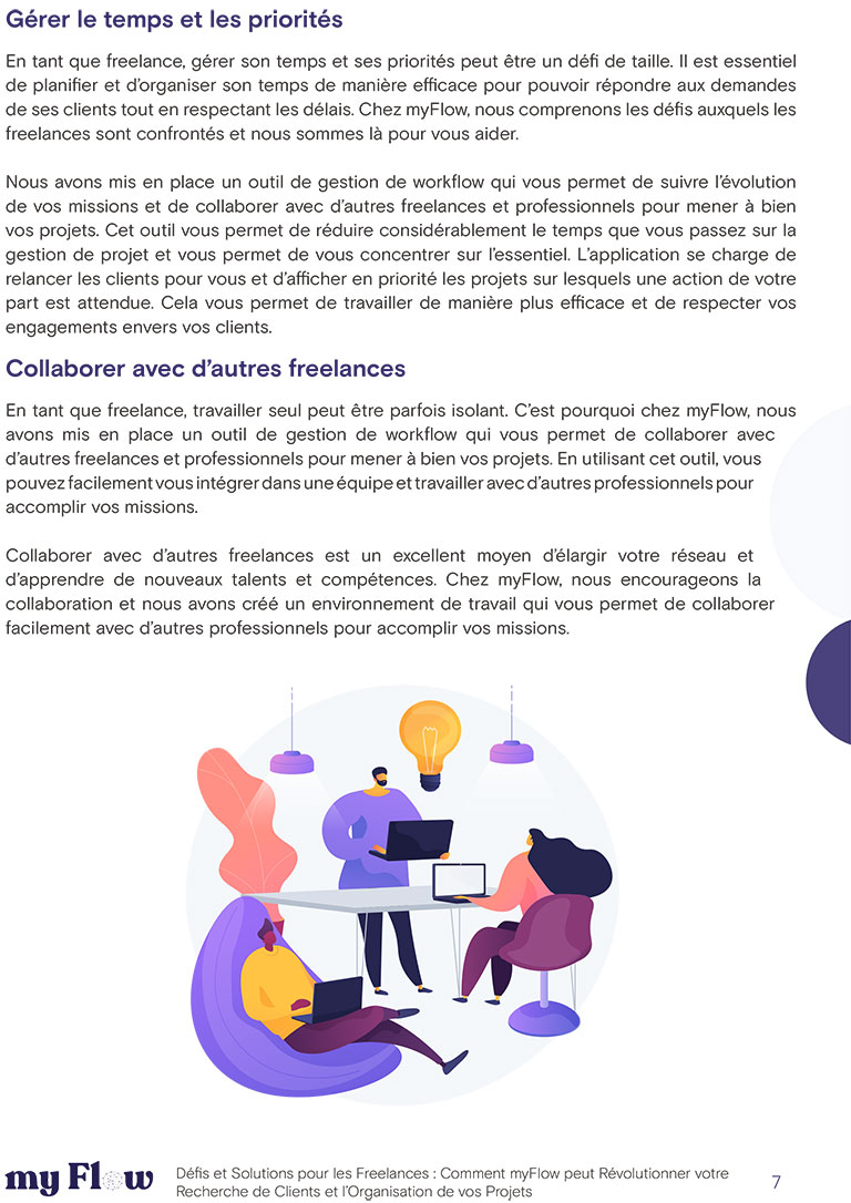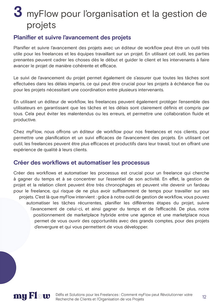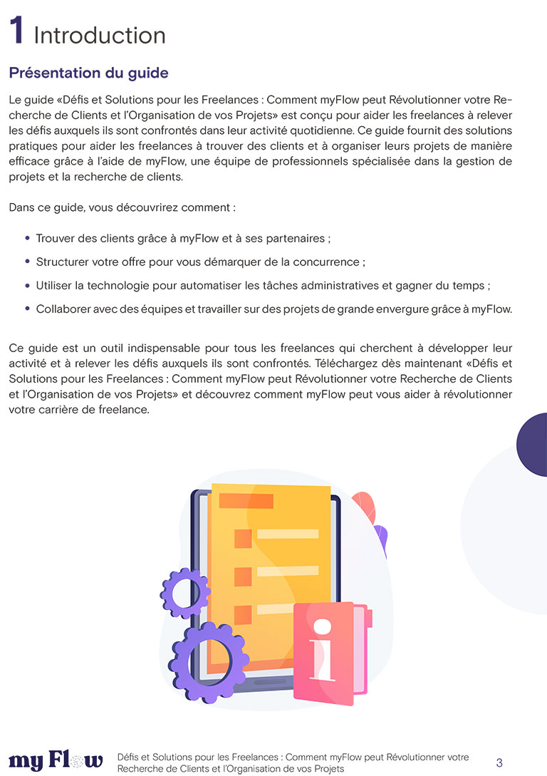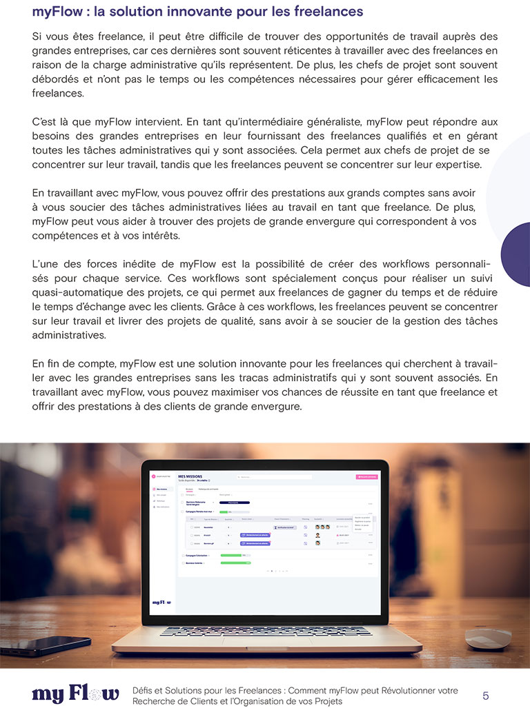 Découvrez comment myFlow peut révolutionner votre manière de travailler en tant que freelance grâce à notre guide “Défis et Solutions pour les Freelances”. Téléchargez-le dès maintenant pour découvrir notre plateforme hybride, nos outils de gestion de workflow et notre accompagnement personnalisé.
