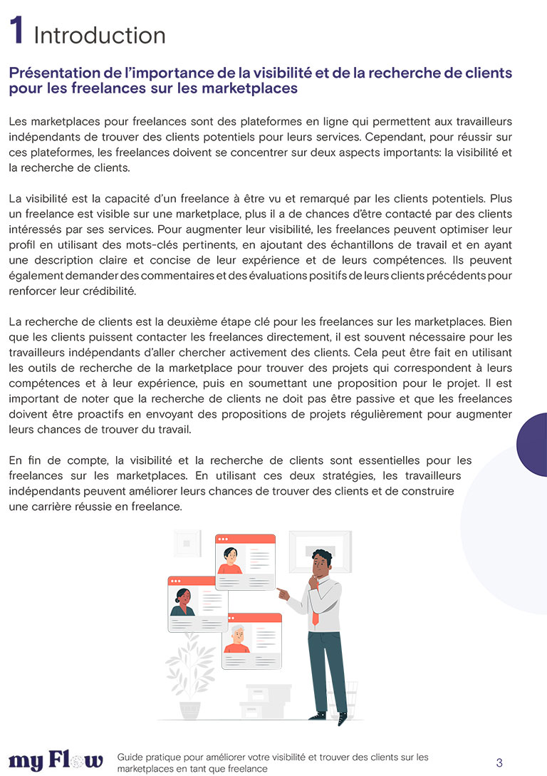 Notre livre blanc “Guide pratique pour améliorer votre visibilité et trouver des clients sur les marketplaces en tant que freelance” est une ressource indispensable pour tous les freelances qui souhaitent améliorer leur visibilité et trouver des clients sur les marketplaces.