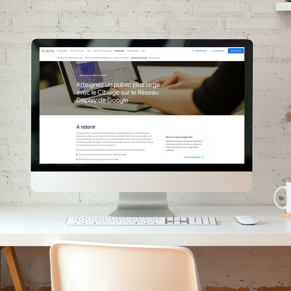 Google Display Ads correspond à une campagne Display réalisée sur Google Ads. Il permet aux annonceurs de diffuser leurs messages publicitaires auprès d’un très grand nombre de sites et d’une large audience.